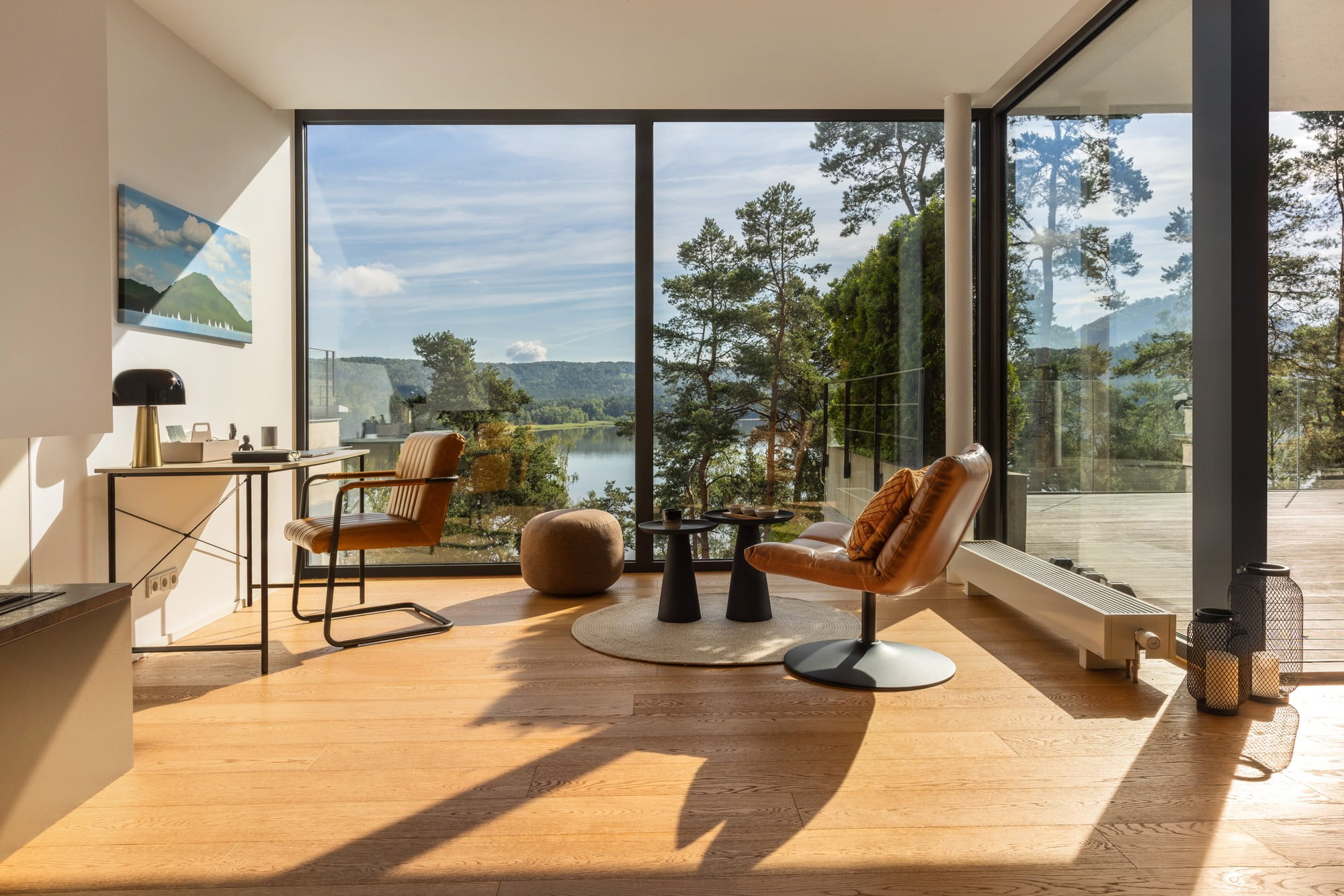 Točno. Kad sam stvarala moodboard za interijer, temeljila sam je na onome što vidimo svaki dan - teksturi borove kore, boji pijeska i beskrajnim nijansama plave s površine jezera. Željela sam da se interijer prirodno stopi s krajolikom izvan prozora.
