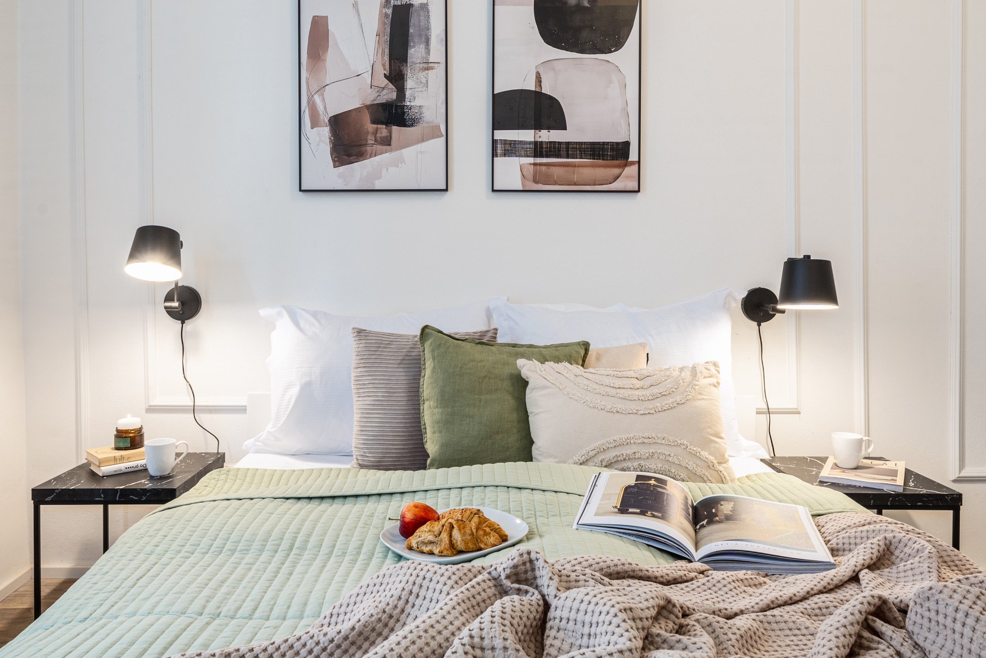 Kompletno opremanje trosobnog stana kreirano je s poštovanjem prema njegovom karakteru i postojećim elementima. Dekorativne letvice, zlatni akcenti i prepoznatljive sofe, koje su već bile dio interijera, postale su polazište cijelog koncepta. Dizajn je naglasio svjetlost, funkcionalnost i vizualnu privlačnost, kako bi stan funkcionirao ne samo estetski, već i praktično u načinu kratkoročnog najma.