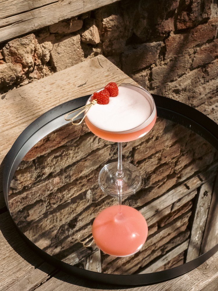 Na kraju dvije do tri svježe maline nabodete na ražnjić za koktel i stavite ga preko čaše za dekoraciju.