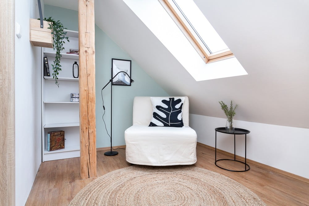 Na nekoliko četvornih metara uspjeli su ugurati prostrani radni stol i kutak za čitanje koji čine visoka polica za knjige i sklopivi stolac.
