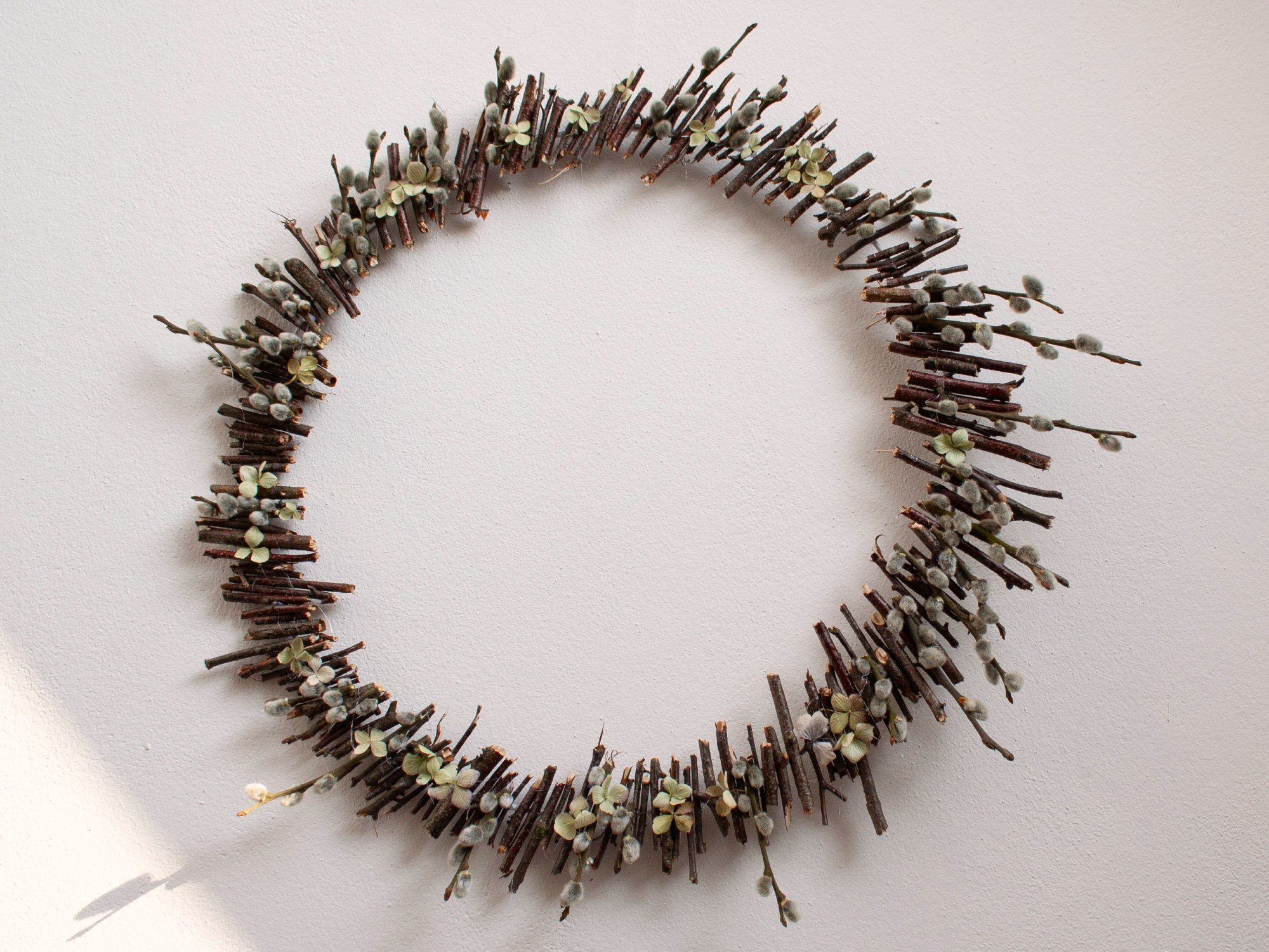 Pokušajte dodati teksturu i boju svom vijencu grančicama. Grančice trna često imaju sivu boju, dren dodaje crvenu, a svježa vrba zelenu.