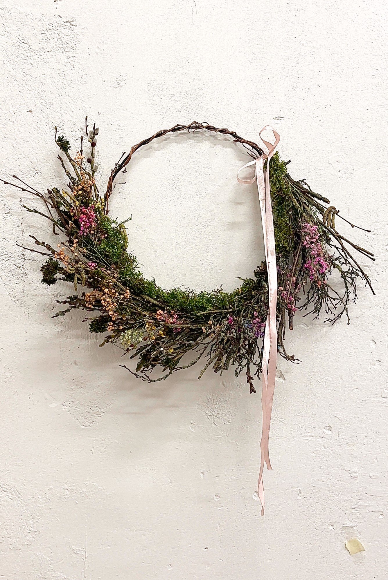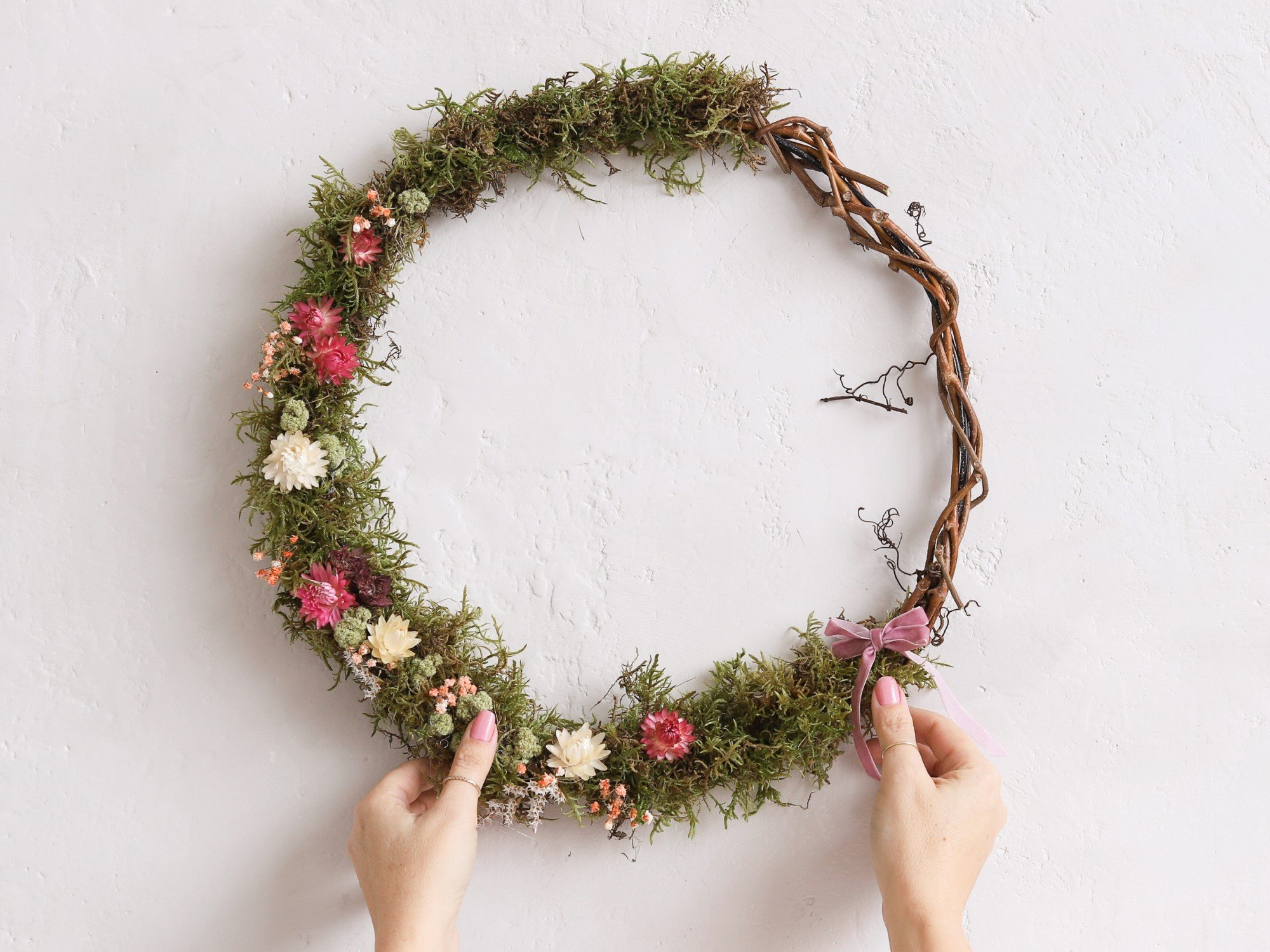 Kada u proljeće čistite oluke, zidove i cvjetne gredice, sigurno ćete pronaći komadiće mahovine. Iskoristite je za izradu vijenca. Možete je omotati oko slamnate podloge ili prstena od grančica. Jednostavno je pričvrstite žicom, po mogućnosti zelenom.