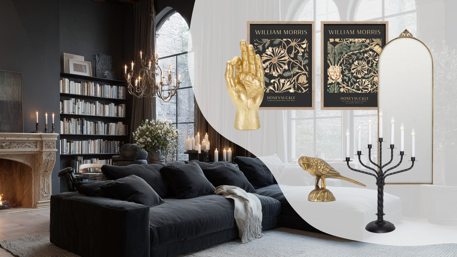„Dekorativne elemente treba pažljivo odabrati. Minimalistički dodaci sa suptilnim referencama na gotiku i tajanstvenu atmosferu najbolje funkcioniraju. Tamni i zlatni okviri za slike, svijećnjaci, knjige, geometrijski uzorci i bilo koji ukras u gotičkom stilu. odličan su izbor. Zlatni detalji dodaju sofisticirani topli sjaj prostoru, u kontrastu s tamnim tonovima i ističući dramatičan karakter interijera. Naravno, legendarna ruka dodaje karakter i ikoničan element povezan sa Wednesday Addams.“