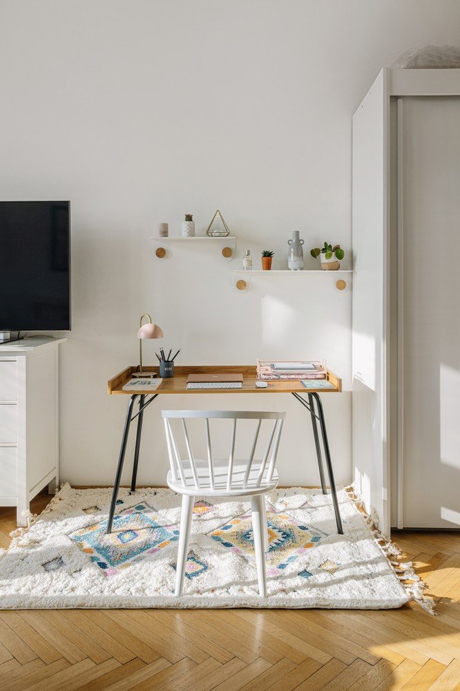 Radni prostor izgleda vrlo prozračno zahvaljujući suptilnom stolu i minimalističkim dodacima.