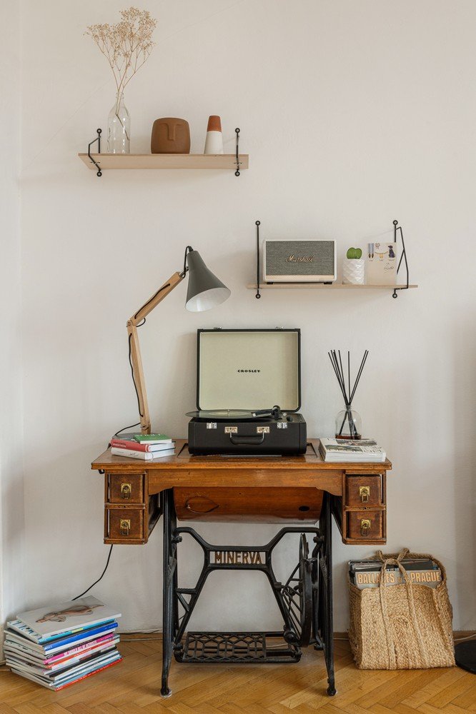 Za mene je dom mjesto s kojim sam jako povezana sa svojom obitelji. Zato u stanu imam vintage komade, poput bakine šivaće mašine ili ogledala. Od novijih artikala, tu su Marshall zvučnik ili komoda brenda Teulat i polica puna dobrih knjiga zbog kojih se osjećamo pametnije.
