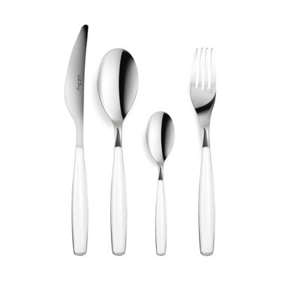 elegantan bijeli pribor za jelo, samo rubovi drški su srebrni, to me iznenadilo i isprobat ćete ga kad ga raspakirate... inače dosta zanimljivo