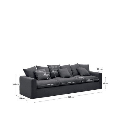 Sofa NoraLanena, s jastučnicom koja se može skinuti, antracitno siva, ostali, širina 340 cm