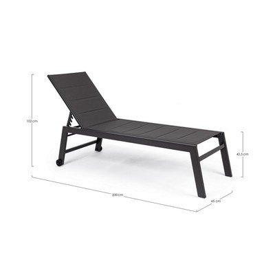 Vrtna ležaljka Hilde brenda Bizzottoto u sivoj boji idealan je suputnik za opuštajuće trenutke na terasi ili uz bazen. Ležaljka s metalnom konstrukcijom i prozračnom tkaninom u sivoj boji jamči stabilnost i udobno odmaranje. Praktični kotačići olakšavaju rukovanje i omogućuju jednostavno premještanje ležaljke prema trenutnim potrebama. Zahvaljujući podesivom naslonu, možete postaviti idealan kut za sunčanje i čitanje.