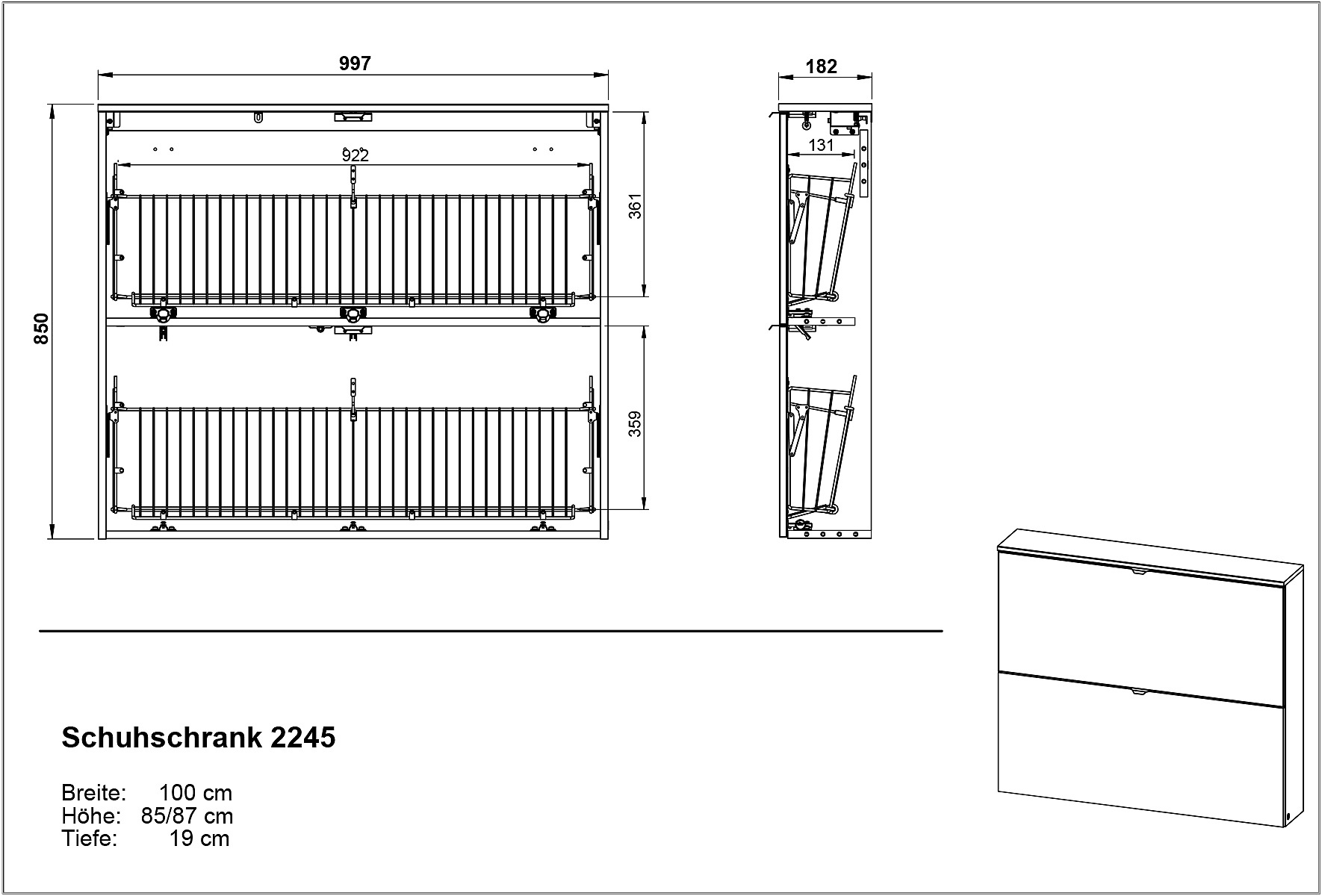 Stalak za cipele Renell idealan je za uske hodnike. Možete ga postaviti na pod ili objesiti na zid.