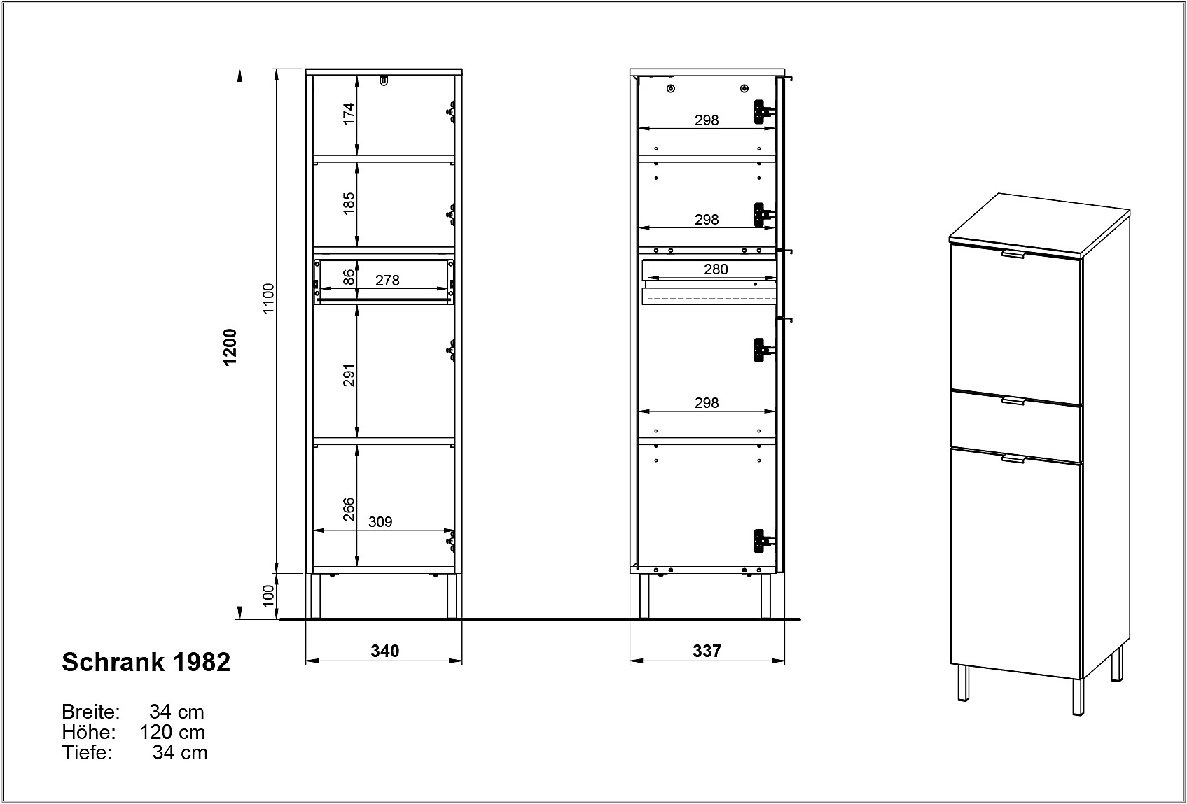 Visok/uski, od iverice, završna obrada: Melamin, antracitno sivi, širina 34 cm, visina 120 cm, dubina 34 cm
