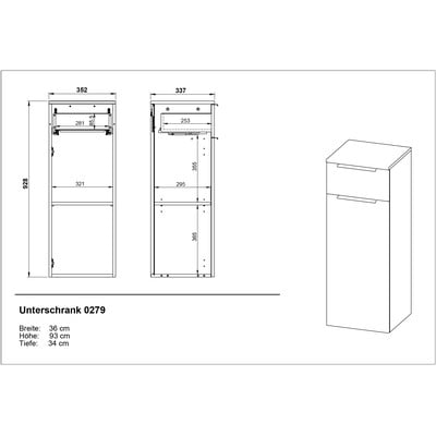Visok/zidni, od iverice, završna obrada: Melamin, antracitno sivi, širina 36 cm, visina 93 cm, dubina 34 cm