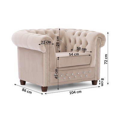 Chesterfield, baršunasti, bež