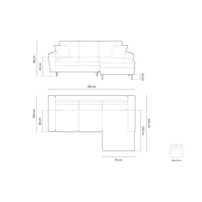 Baršunasti, sklopiva/s prostorom za odlaganje, s desnim kutom/s ležaljkom, bež, s 3 mjesta, širina 241 cm