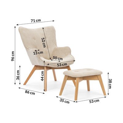 Bež fotelja s naslonjačem za noge od samta Niko – Ropez