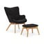 Crna fotelja s naslonjačem za noge od samta Niko – Ropez