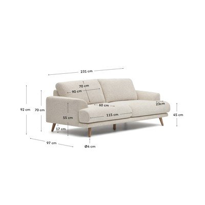 Od šenila, bež, s 3 mjesta, širina 228 cm