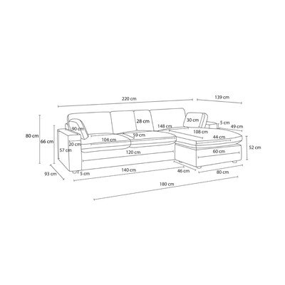 S desnim kutom/s lijevim kutom/promjenjiva/s ležaljkom, bež, s 3 mjesta, širina 220 cm