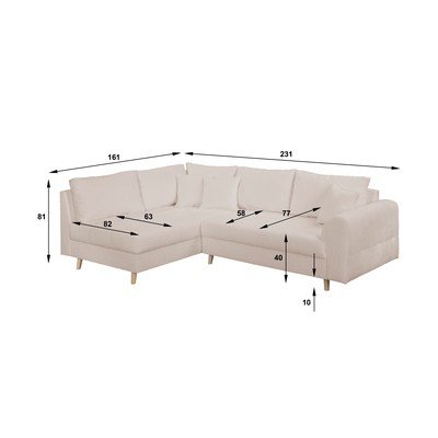 Od bouclé tkanine, s lijevim kutom/u obliku slova L, bež, s 3 mjesta, širina 231 cm