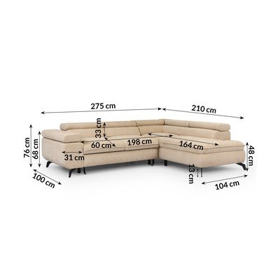 Od šenilaPodesiva/sklopiva/s prostorom za odlaganjeS desnim kutom/u obliku slova LBežPogodna za kućne ljubimce/otporna na mrljeS 4 mjestaŠirina 275 cm