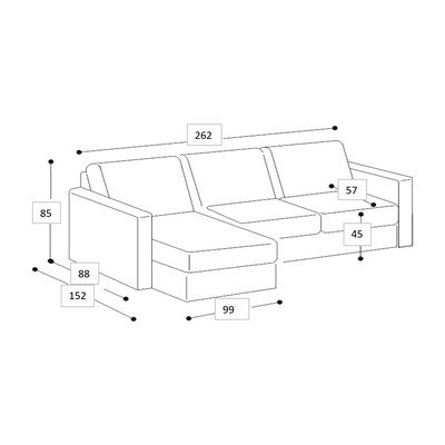Od šenila, s lijevim kutom/s ležaljkom, bež, s 4 mjesta, širina 262 cm