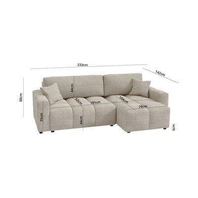 Kutna garnitura LukiSklopiva/s prostorom za odlaganje, s desnim kutom/s lijevim kutom/promjenjiva/s ležaljkom, bež/svjetlo smeđa, s 3 mjesta, širina 233 cm