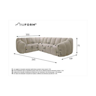 Bež kutna garnitura (s desnim kutom/u obliku slova "U") Shell – Miuform