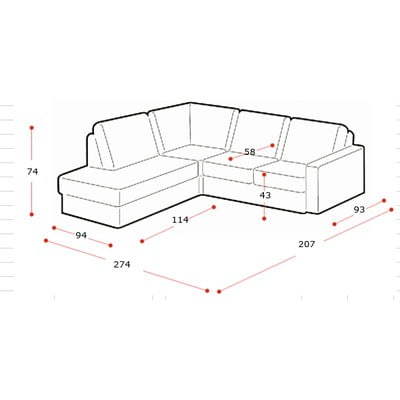 S desnim kutom/u obliku slova LBežS 3 mjestaŠirina 274 cm