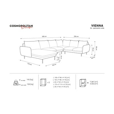S desnim kutom/u obliku slova "U"BežOstaliŠirina 330 cm