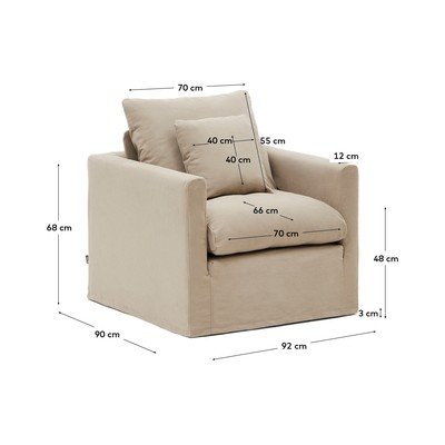 Fotelja NoraLanena, s jastučnicom koja se može skinuti, bež