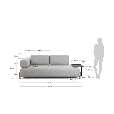 Compo kolekcija sofa idealna je za pojedince koji vole sastavljati namještaj prema vlastitim potrebama. Njegova minimalistička elegancija može se nadopuniti ukrasima i drugim komadima namještaja u raznim stilovima te će vašem životu dati novo i moderno lice. Zato dopustite da vas zavedu njezine tople i meke ruke. O brendu: Barcelona's Kave Home djeluje na tržištu od 1982. Zahvaljujući timu iskusnih dizajnera, donosi namještaj koji miješa preciznu izradu s nevjerojatno ukusnim i modernim dizajnom. Naravno, ne zaboravlja ni na okoliš.