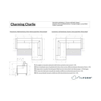 Bež sklopiva kutna garnitura (s lijevim kutom) Charming Charlie – Miuform