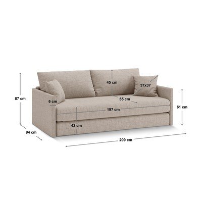 Bež sklopiva sofa od šenila 209 cm Shannon – Cosmopolitan Design