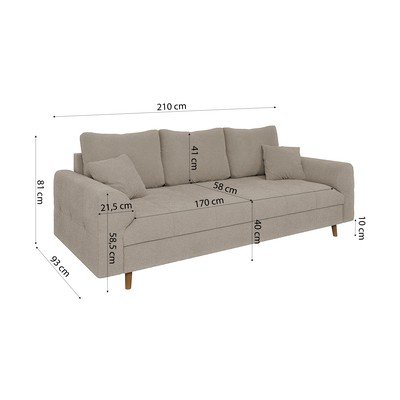 Od bouclé tkanine, bež, s 3 mjesta, širina 210 cm