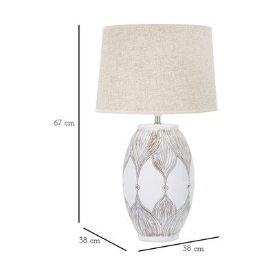 S tekstilnim sjenilom, od polyresina, s utikačem, bijela/bež, visina 67 cm
