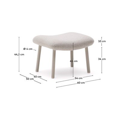 Podnožje Inari brenda Kave Home ističe se svojim modernim dizajnom. Inspirirano je klasičnim ležaljkama, ali reinterpretirano čistim geometrijskim linijama i zaobljenim volumenima, što mu daje prepoznatljiv izgled. Teksturirana presvlaka od tkanine odlikuje se visokom otpornošću na habanje. Za maksimalnu udobnost, punjenje sjedala izrađeno je od pjene visoke gustoće (30 kg/m³), koja nudi idealnu ravnotežu između čvrstoće i udobnosti. Osim toga, dobavljač tkanine ima OEKO-TEX® STANDARD 100 certifikat, što potvrđuje ekološki sigurnu i odgovornu proizvodnju. Noge su izrađene od čeličnih cijevi promjera 38 mm i praškasto su premazane mikroteksturiranom površinom, što jamči njihovu izdržljivost i dugovječnost. Ovaj komad, koji savršeno nadopunjuje odgovarajuću fotelju, idealan je za svaki prostor koji zahtijeva sofisticiranost s daškom originalnosti.