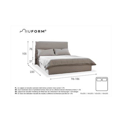 Mekano uzglavlje ovog kreveta Sleepy Luna podsjeća na oblak. Upotreba tkanine s 3D efektom naglašava njegov jedinstveni karakter. Dijelovi naslona za glavu vezani su uzicama sa svake strane - zanimljiv detalj koji će vam privući pažnju. Napomena: Jastuci su uključeni u paket.