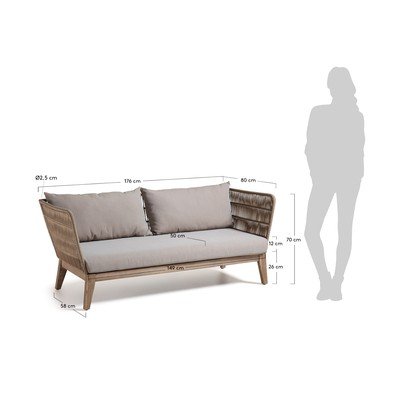 Vrtna sofa BellanoS 3 mjesta, smeđa/bež, nosivost 250 kg, širina 176 cm, visina 70 cm, dubina 80 cm