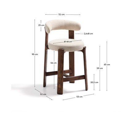 Granitna barska stolica brenda Kave Home elegantan je i praktičan dodatak modernoj kuhinji ili blagovaonici. Njezina konstrukcija izrađena je od masivnog jasenova drva, koje dolazi iz šuma kojima se upravlja u skladu s načelima održivog šumarstva, što dokazuje FSC™ 100% certifikat. Sjedalo i zaobljeni naslon presvučeni su tkaninom prepoznatljive strukture, koja je izrađena od recikliranog poliestera. Ovaj materijal dolazi od dobavljača s Global Recycled Standard certifikatom, koji jamči manju potrošnju resursa i primarnih sirovina. Osim toga, tkanina zadovoljava OEKO-TEX® STANDARD 100 certifikat, koji potvrđuje ekološki sigurnu i odgovornu proizvodnju.