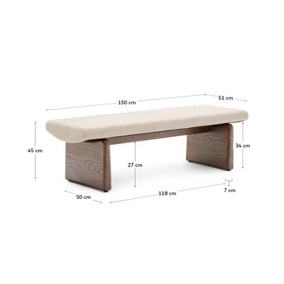 Od šenila, od masivnog drveta/podstavljena, bež/u tamnoj prirodnoj boji, širina 150 cm, dubina 51 cm, visina 45 cm