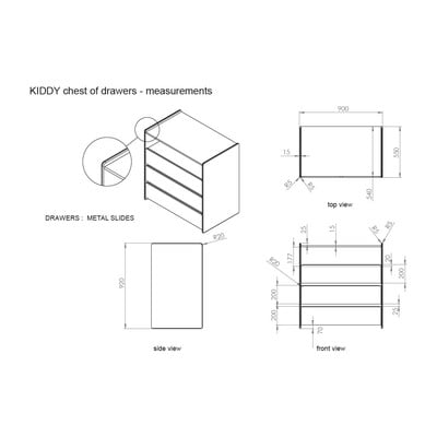 Dječju komodu Kiddy ćete obožavati zahvaljujući funkcionalnom dizajnu koji ćete lako uskladiti sa skandinavskim ili modernim interijerima. Nudi mnogo prostora za pohranu. Osim toga, možete ga ukrasiti ukrasom, plišanom životinjom ili omiljenom knjigom vašeg djeteta. Uz komodu može doći i komoda za presvlačenje iz istog asortimana.
