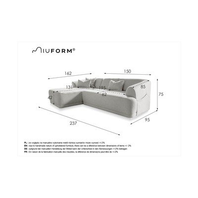 S lijevim kutom/s ležaljkom, bijela, s 2 mjesta, širina 237 cm, dubina 162 cm, dubina sjedala 69 cm, …