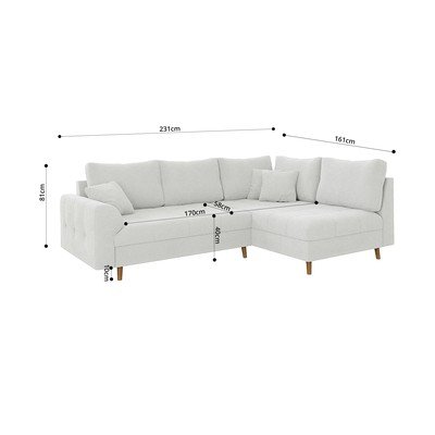 Od bouclé tkanine, s desnim kutom/u obliku slova L, bijela, s 3 mjesta, širina 231 cm, dubina 161 cm, dubina sjedala 58 cm