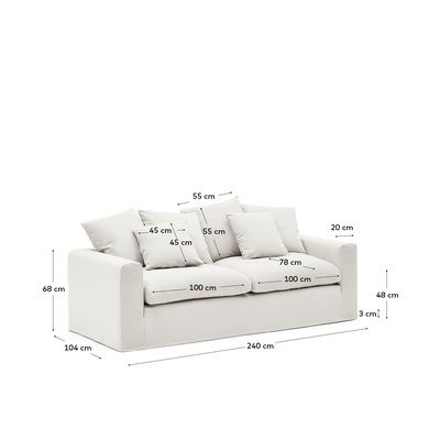 Sofa NoraLanena, bijela, s 3 mjesta, širina 240 cm