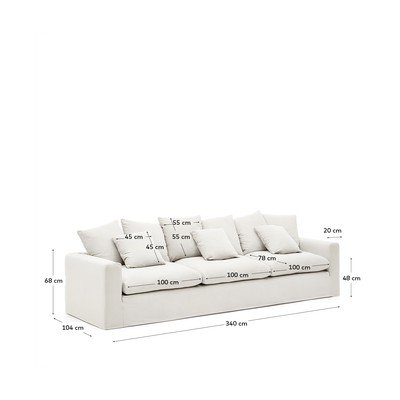 Bijela lanena sofa 340 cm Nora – Kave Home