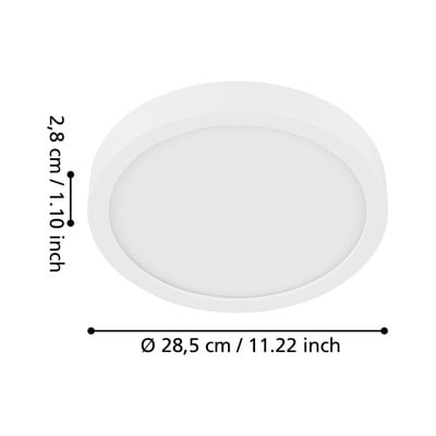 LED, s plastičnim sjenilom, metalna/plastična, bijela, ø 28,5 cm, visina 3 cm