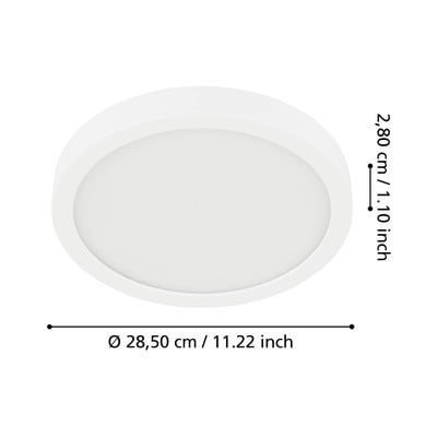 LED, s plastičnim sjenilom, metalna/plastična, bijela, ø 28,5 cm, visina 3 cm