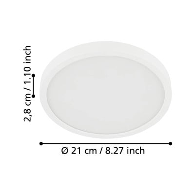 LED, s plastičnim sjenilom, metalna/plastična, bijela, ø 21 cm, visina 3 cm