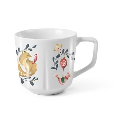 Kombinacija moderne nostalgije i topline za stvaranje jedinstvene atmosfere za jesensko i božićno blagovanje. Inspirirana nordijskom prirodom i klasičnim božićnim motivima, ova dizajnerska šalica Rosendahl stvorena je u suradnji s norveškim ilustratorom Fam Irvollom. Minimalistički bijeli Grand Cru posuđe dobio je razigranu i maštovitu ilustraciju koja spaja grančice, lišće, bobice, božikovinu, ptice, licitarska srca i staklene ukrase u skladnu cjelinu.