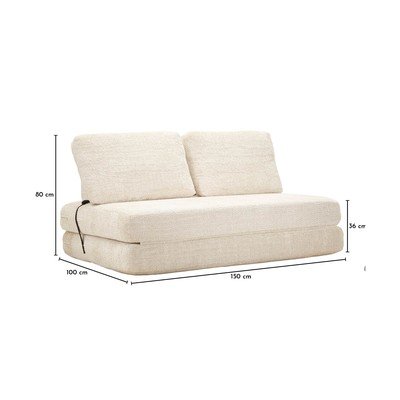 Od bouclé tkanine, sklopiva, bijela, s 2 mjesta, širina 150 cm