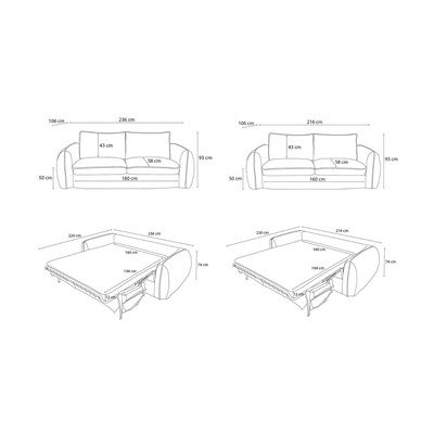 Za spavanje/sklopivaS jastučnicom koja se može skinutiBijelaS 3 mjestaŠirina 236 cmDubina 106 cmDubina sjedala 58 cm